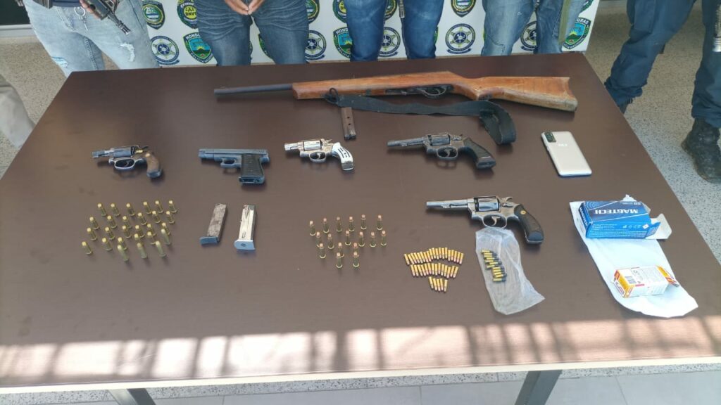 Por otra parte, se inició proceso penal en contra de Yunior Donay Ríos Ponce, quien fue capturado mediante allanamiento de morada en el barrio Las Flores, San José de Comayagua, en posesión de cuatro armas de fuego, cargadores y municiones, por lo que se le presentó requerimiento fiscal por tenencia ilegal de armas de fuego, sumándose a la orden de captura que tenía pendiente por allanamiento de domicilio y amenazas.