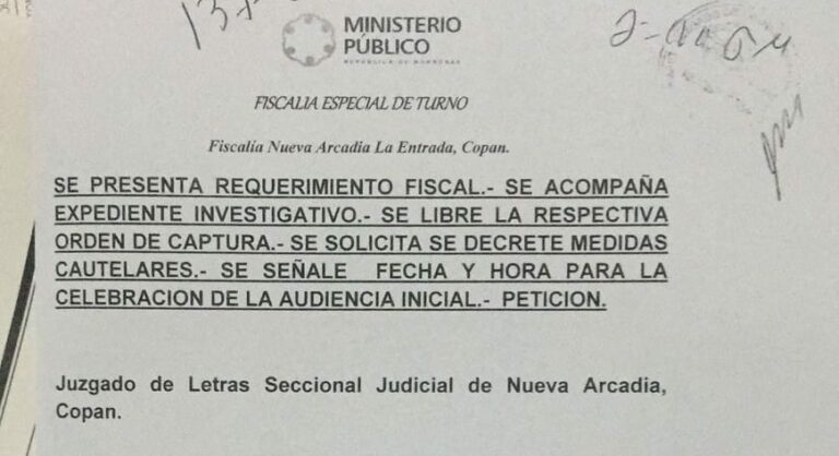 Es por eso que se presentó requerimiento fiscal contra Carlos Amílcar Deras, por el supuesto delito de lesiones agravadas, para Albaro Lizardo Erazo Díaz por el presunto incumplimiento del deber de asistencia y sustento, a José Norberto Orellana Mejía, por el supuesto delito de amenazas; también se le presentó requerimiento fiscal a Fany Yessenia Castellanos Madrid, por supuestos daños agravados en perjuicio de la administración pública.