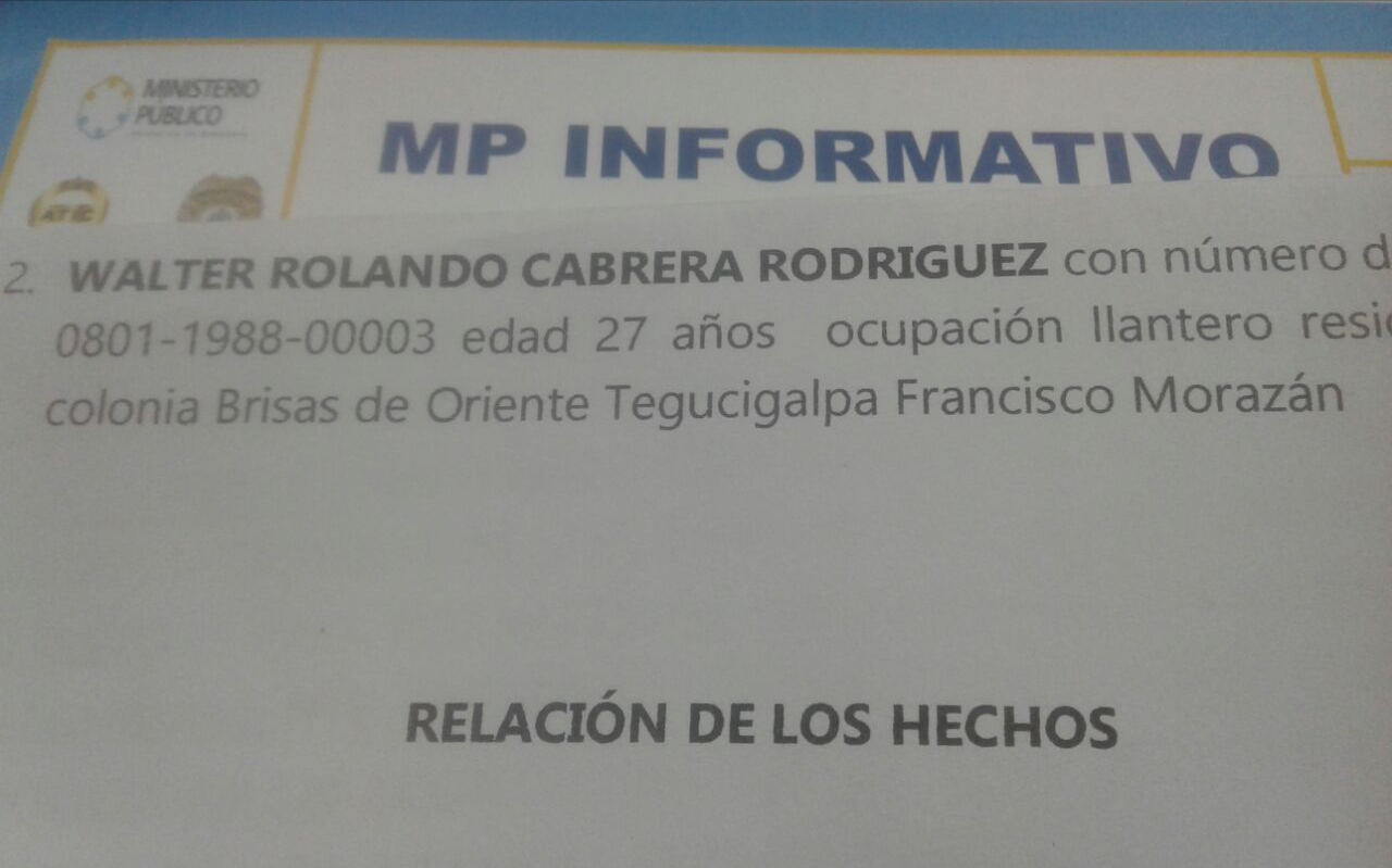 De acuerdo al informe policial, los hechos se suscitaron la noche dem 19 de abril de 2016 en la colonia Brisas de Oriente de la capital y se establece que el imputado y la víctima protagonizaron una fuerte discusión en razón de que Cabrera Rodríguez se oponía a la relación sentimental de su madre, lo que derivó en que éste provocara con un cuchillo heridas mortales en el tórax de Rivas, gritándole «esto te pasa por meterte con mi madre».