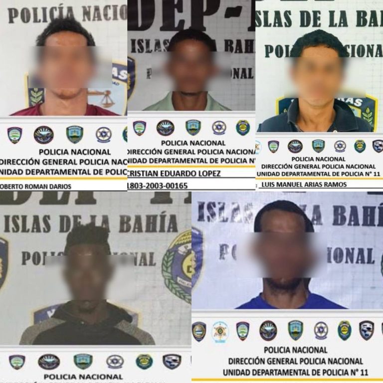 Entre los detenidos están Yuslor Deon Johnson por robo con violencia e intimidación, así como lesiones; Joseph Michael Jackson Moore, originario de Guanaja, por maltrato familiar y lesiones; Luis Manuel Arias Ramos fue detenido por hurto.