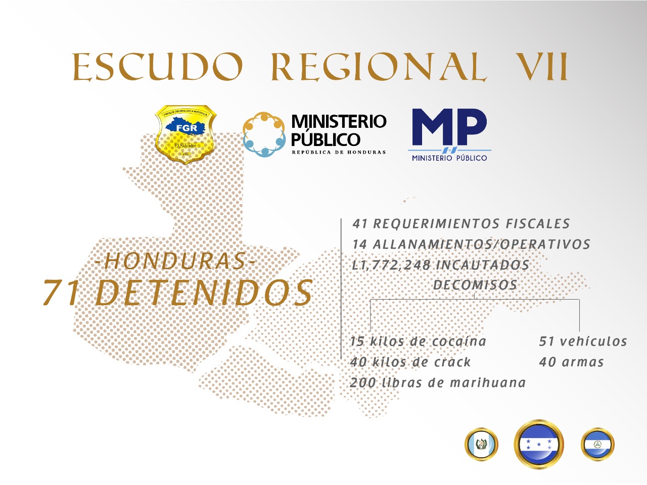 operación escudo Regional VIITegucigalpa, Francisco Morazán.- Tras liderar el Ministerio Público de Honduras una estrategia conjunta con los Ministerios Públicos de Guatemala y El Salvador, este día concluyen exitosamente la Operación Escudo Regional VII dirigida a combatir estructuras criminales de la Pandilla 18 y Mara Salvatrucha MS-13 a nivel nacional.