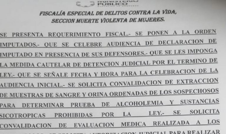 Con el señalamiento de la audiencia preliminar, el Ministerio Público espera formalizar la acusación y que el caso se eleve a juicio oral y público.