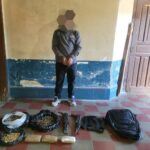 Al momento de ser requerido se le decomisó una mochila color negro la cual en su interior contenía 1,327 cartuchos de arma de uso prohibido, seis cargadores metálicos color negro, dos fusiles AK- 47 sin marca y serie y tres envoltorios con cinta adhesiva conteniendo en su interior hierba seca supuesta marihuana, cabe mencionar que el sospechoso y la evidencia fueron puestos a la orden de fiscales de Yuscarán, para continuar el proceso penal correspondiente.