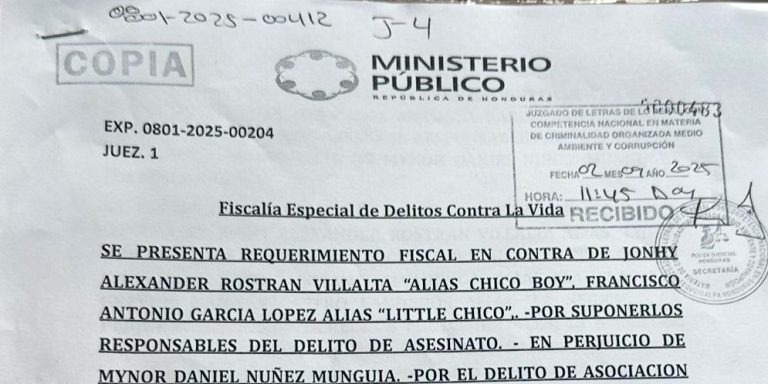 Tegucigalpa, Francisco Morazán. La Fiscalía Especial de Delitos Contra la Vida (FEDCV) a través de la Sección en Muerte de Menores obtuvo auto de formal procesamiento con la medida de prisión preventiva en contra de Johnny Alexander Rostran Villalta, alias «Chico Boy» y Francisco Antonio García López alias «Little Chico» por el delito de asesinato en perjuicio del menor Maynor Daniel Núñez Munguía.