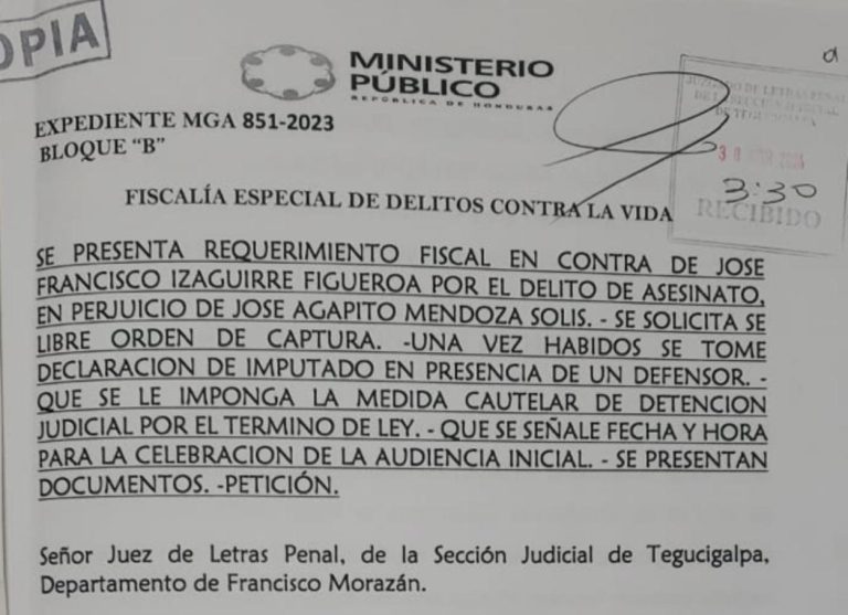 Tegucigalpa, Francisco Morazán.- En audiencia inicial la Fiscalía Especial de Delitos Contra la Vida (FEDCV) obtiene auto de formal procesamiento con prisión preventiva en contra de José Francisco Izaguirre Figueroa presunto responsable del asesinato de José Agapito Mendoza Solís, quien se dedicaba a la carpintería.