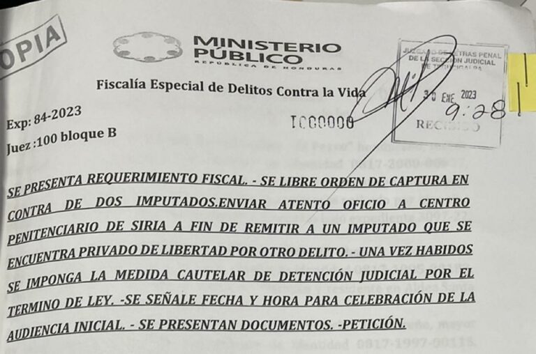 La resolución la impuso el juez de letras de la sección judicial de Tegucigalpa, luego que agentes de tribunales de la Sección de Audiencias y Juicios de la Fiscalía Especial de Delitos Contra la Vida (FEDCV) aportaran en audiencia inicial varios indicios y evidencias de la participación de ambos imputados.