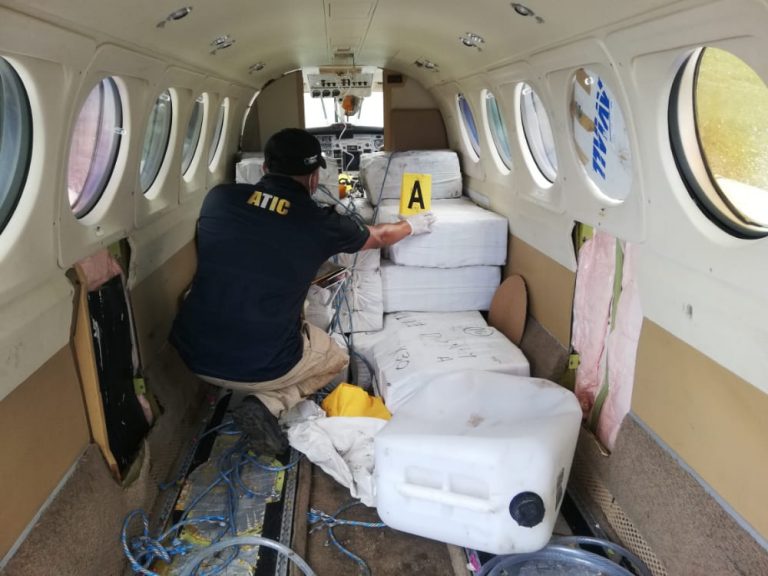 Fiscales Antidrogas y Agentes de la ATIC se desplazaron hasta la zona de Brus Laguna para realizar la inspección de esta aeronave y de los fardos que transportaba la misma y en breve arribarán a la base aérea “Hernán Acosta Mejía” para luego efectuar la contabilización de la cantidad de droga y proceder a las pruebas toxicológicas a cargo de Medicina Forense.