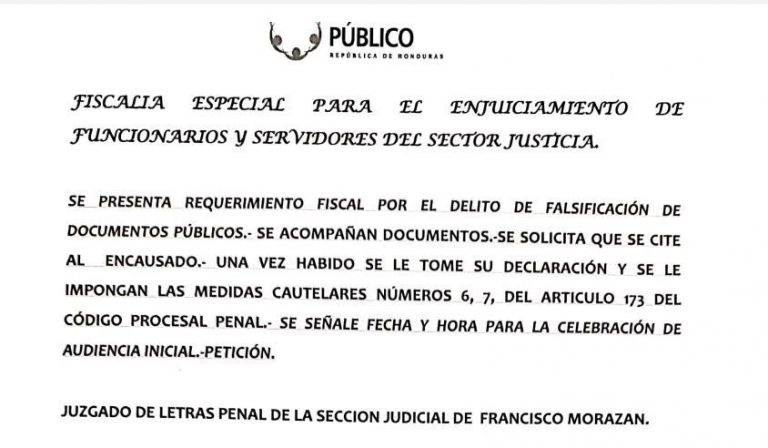 Todo ello quedó acreditado mediante un dictamen de Laboratorios de Criminalísticos y en diligencias efectuadas en el Departamento de Recursos Humanos del Instituto Hondureño de Seguridad Social (IHSS), institución donde laborada la demandada.