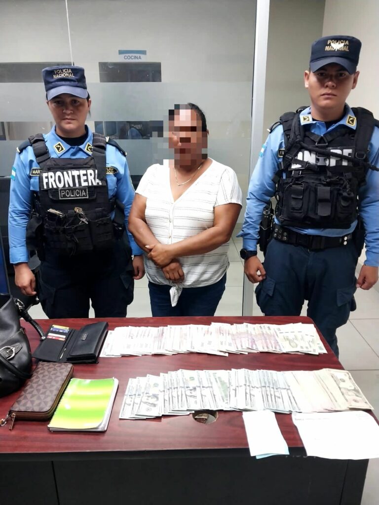 La señora fue detenida en el aeropuerto internacional Golosón de La Ceiba, Atlántida, el pasado sábado 02 de septiembre de 2023. Según los hechos, ella transportaba la cantidad de $14,400.00 y L.90, 800.00 en su bolso de mano.