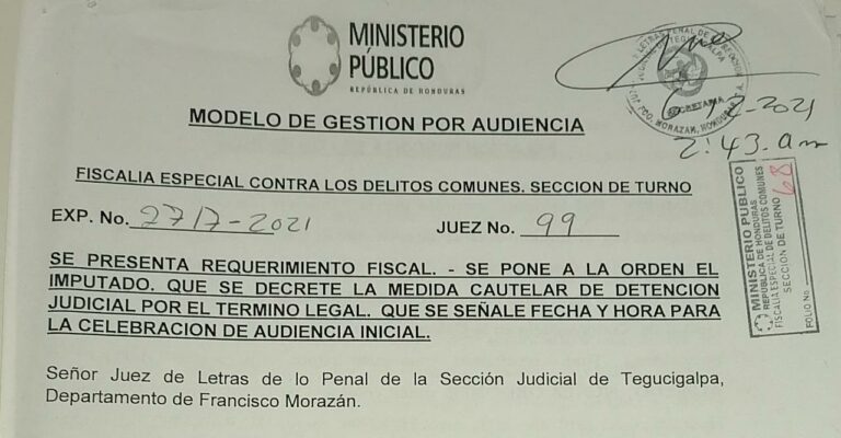 Tegucigalpa, Francisco Morazán. Por los delitos de homicidio imprudente en perjuicio de Osly Ariel Gonzáles Velásquez y conducción temeraria en perjuicio de la seguridad vial, la Fiscalía Especial de Delitos Contra la Vida (FEDCV) logró en audiencia inicial un auto de formal procesamiento en contra de Walter Alfredo Núñez Ordóñez.