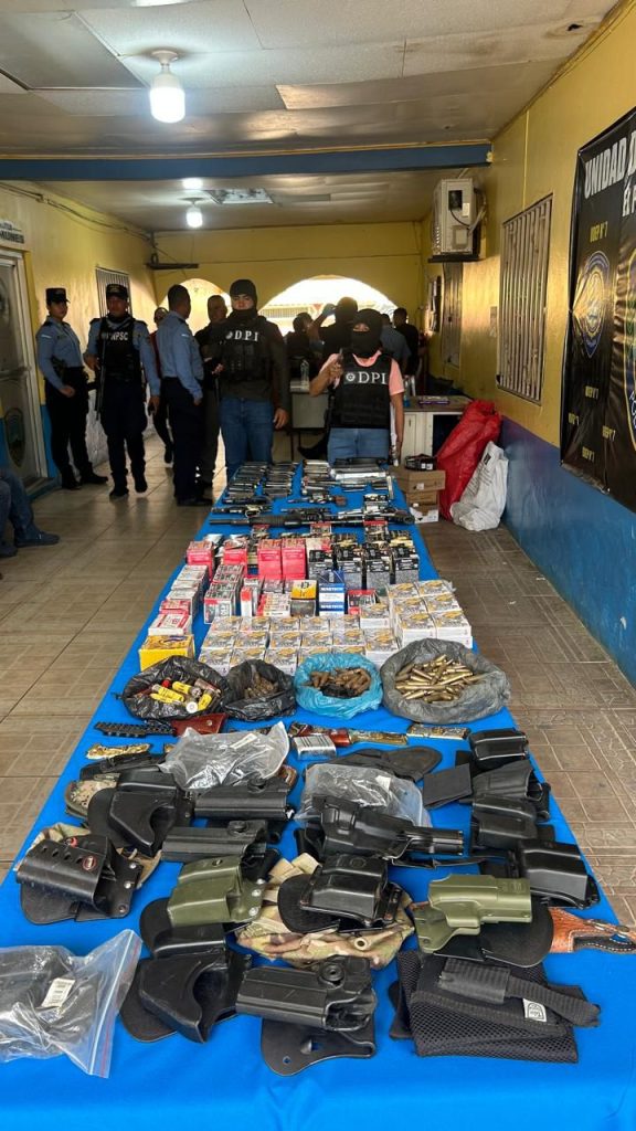 Durante el proceso de inventario y embalaje de lo incautado, las autoridades encontraron 55 cargadores de pistola, siete porta cargadores, 12 fundas para pistola, tres armas de fuego tipo revólver, una escopeta, y 101 cajas conteniendo cartuchos de diferentes calibres, además de 2,500 unidades de munición de distintos calibres y nueve accesorios para arma de fuego.