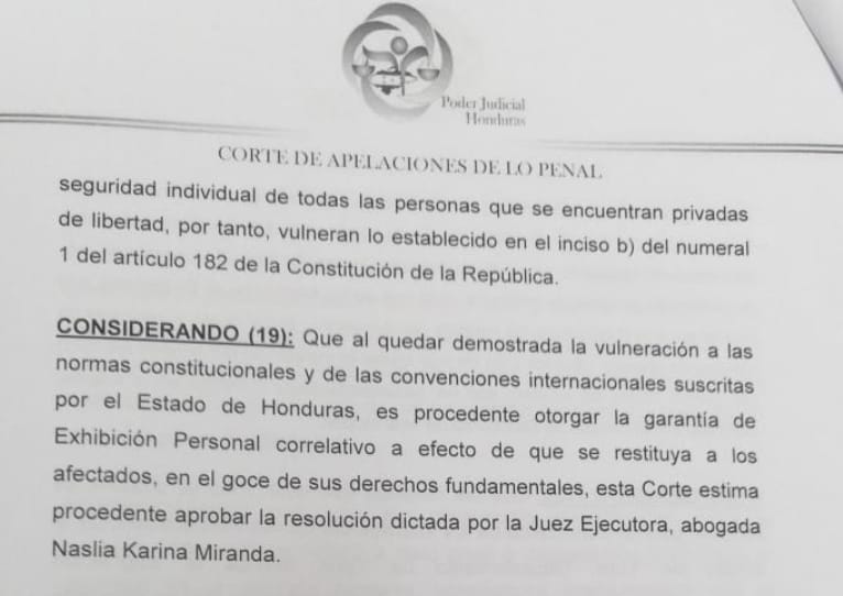 La Corte de Apelaciones de la Sección Judicial de San Pedro Sula, al analizar la petición del ente fiscal declaró “HA LUGAR” el recurso de Habeas Corpus presentado a favor de reclusos del centro penal de Yoro, por ende, ordena al director del INP el cumplimiento de acciones conducentes a evitar más condiciones que vulneren la dignidad humana de los internos e internas.