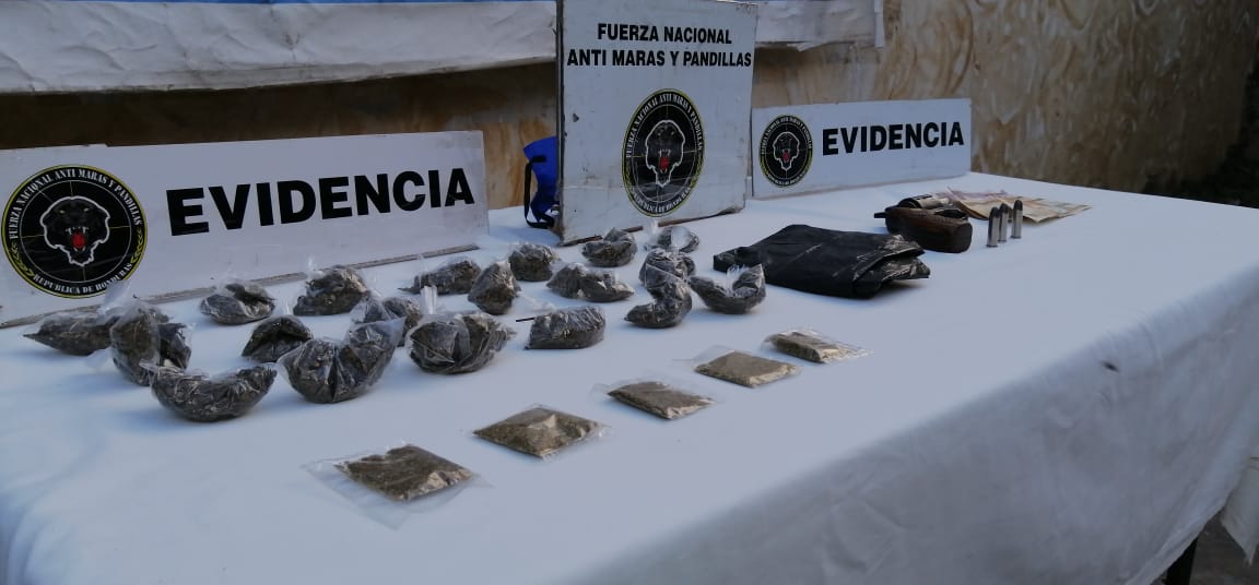 Al momento de la captura se les decomisaron varios envoltorios conteniendo hierba seca, supuesta marihuana, 10 envoltorios con piedras de crack y a Euceda Ríos también se le decomisó un arma de fuego.