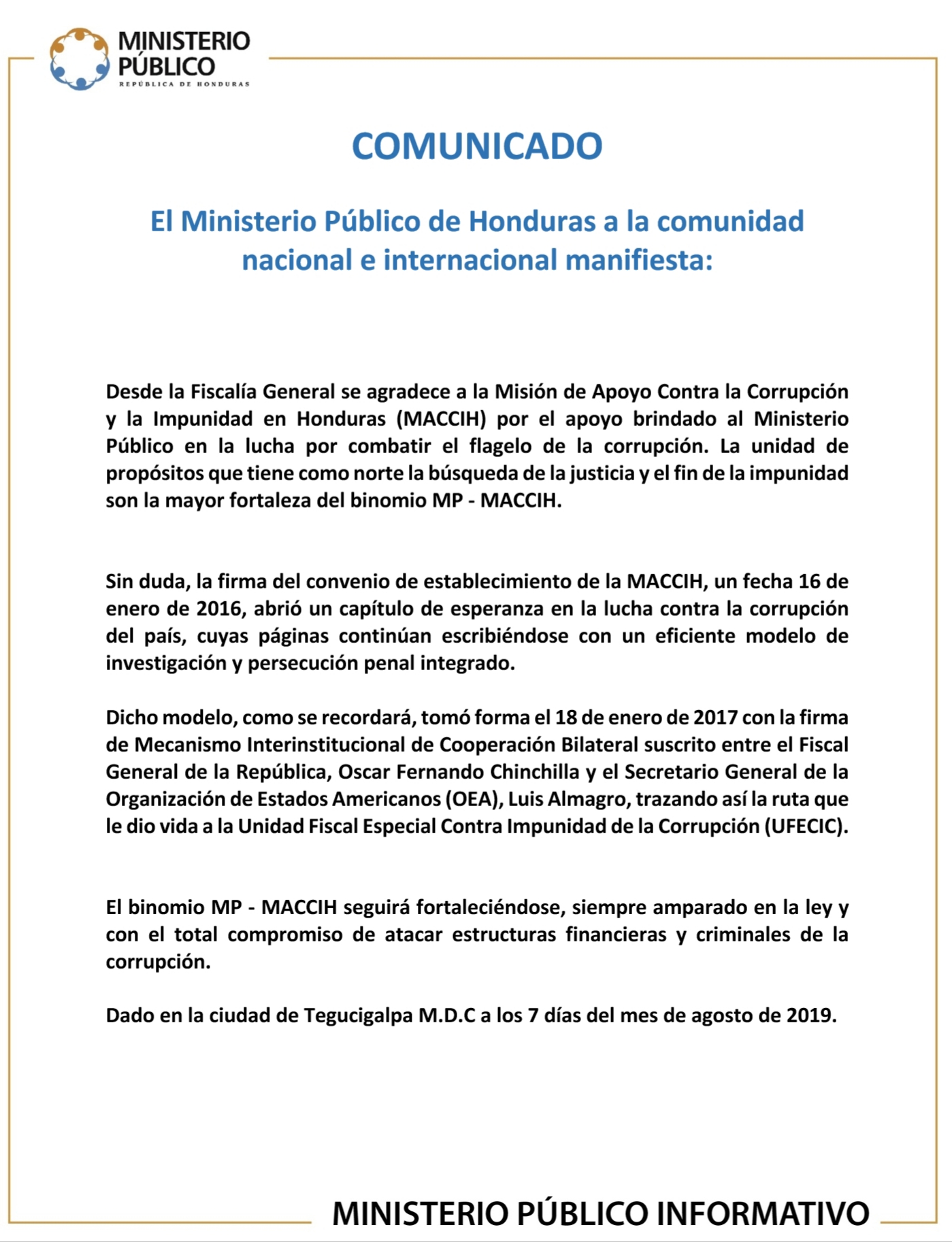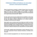 El Ministerio Público de Honduras a la comunidad nacional e internacional manifiesta: