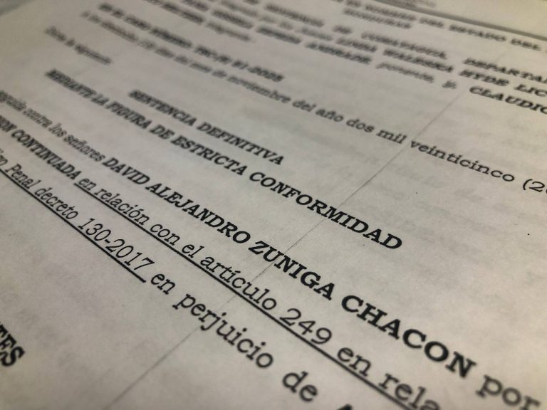 Consciente de las pruebas en poder del Ministerio Público, David Alejandro Zúñiga Chacón a través de su defensa solicitó una sentencia de estricta conformidad, aceptando su responsabilidad penal y todos los hechos señalados por el ente acusador.