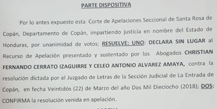Tegucigalpa. Francisco Morazán. Luego que la Fiscalía Especial de Derechos Humanos (FEDH) obtuvo Auto de Formal Procesamiento contra cuatro agentes de la Fuerza Nacional Antiextorsión (FNA) por suponerlos responsables de los delitos de Abuso de Autoridad y Lesiones Graves, la Defensa de los imputados presentó el Recurso de Apelación respectivo, mismo que fue declarado Sin Lugar por la Corte de Apelaciones Seccional de Santa Rosa de Copán.