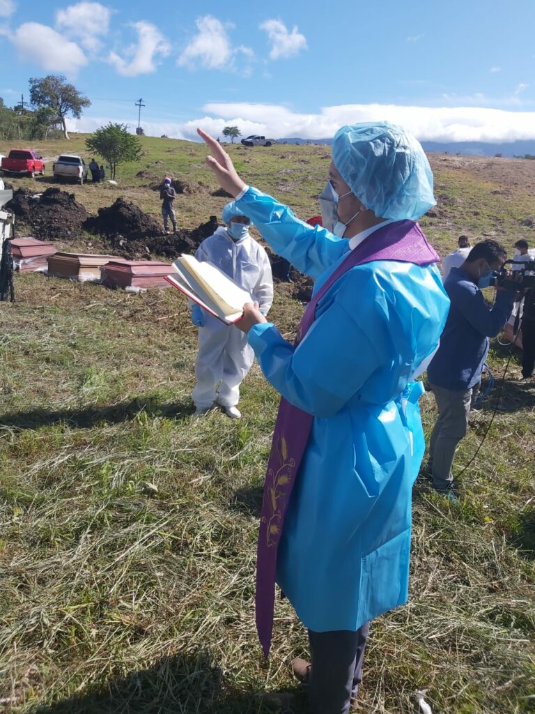 En la inhumación de este día, se contó con la presencia del párroco de la iglesia San Martín de Porres, el sacerdote Santos Pablo Velásquez quien expresó que «la iglesia se acerca a dar una cristiana sepultura a estos hermanos que aunque no conocemos su nombre, no sabemos quiénes eran pero estamos seguros que son hijos de Dios y que merecen una oración, un entierro digno».