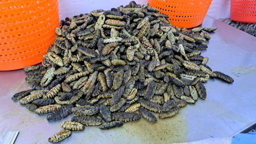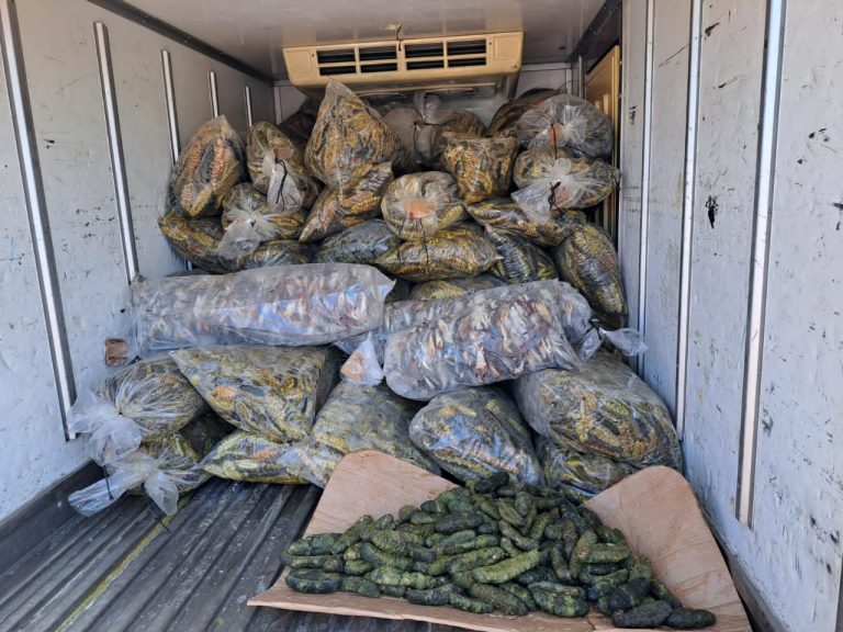 Éste pepino venía procedente de La Mosquitia con destino a la procesadora Azul Interexport de La Ceiba, razón por la cual, el Ministerio Público y el personal técnico de DIGEPESCA procedieron a la inspección y muestreo morfométrico del producto.