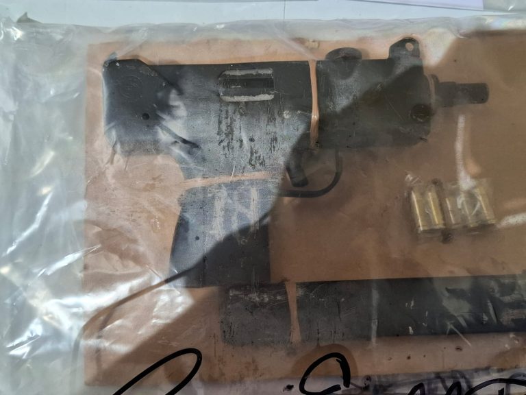 Sin embargo, fue requerido y al hacerle el registro personal se le despojó de una mochila donde se le encontró cinco envoltorios medianos de plástico transparente conteniendo en su interior hierba seca, supuesta marihuana , un total de 83 envoltorios conteniendo en su interior supuesta cocaína y una mini uzi color negra sin serie.