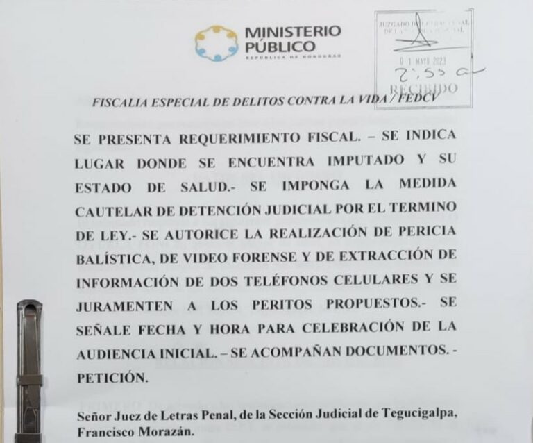 Tegucigalpa, Francisco Morazán. La Fiscalía Especial de Delitos Contra la Vida (FEDCV) presentó requerimiento fiscal y logró la detención judicial de José Danilo Oyuela Ponce sindicado de los delitos de femicidio agravado y portación ilegal de arma de fuego en perjuicio de la abogada Nancy Lorena Anariba Hernández y el orden público, respectivamente.