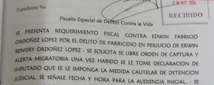 Tegucigalpa, Francisco Morazán. En audiencia de declaración de imputado, la Fiscalía Especial de Delitos Contra la Vida (FEDCV) logró detención judicial en contra Edwin Fabricio Ordoñez López supuesto responsable del parricidio de su padre Erwin Reniery Ordóñez López.
