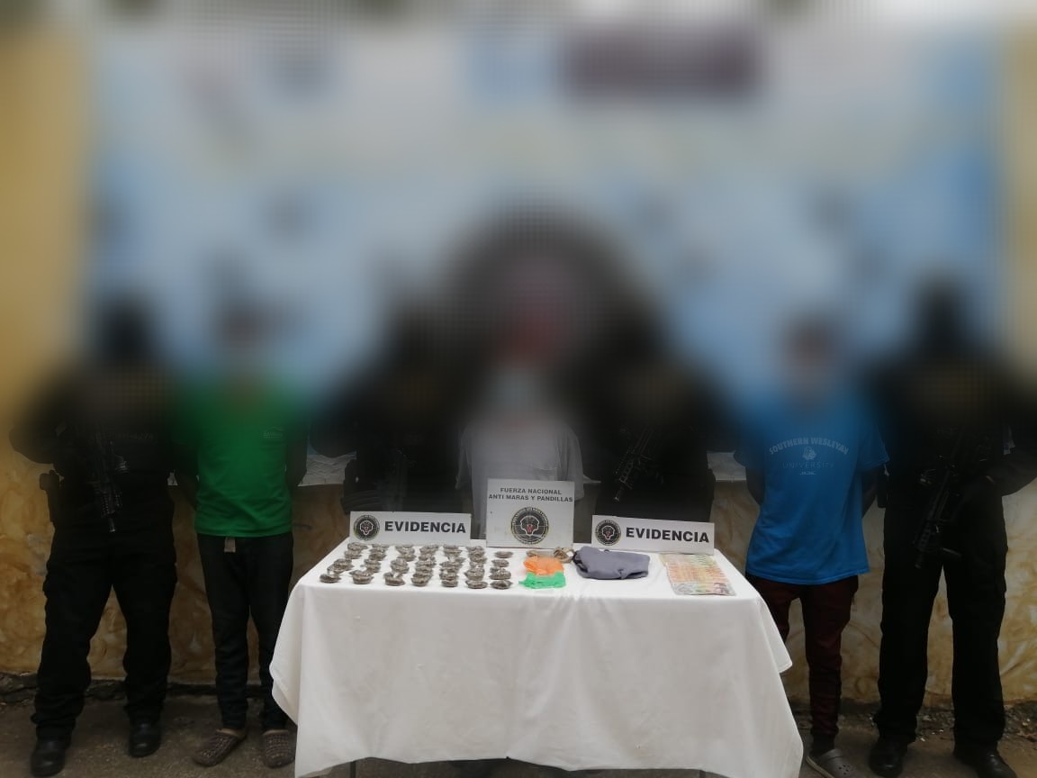Los detenidos responden a los nombres de Grebil Inain Buezo Suazo (32), Cristian Ramiro Hernández Aguilera (21) y Manuel Antonio Martínez Hernández (20), acusados de tráfico de drogas en su modalidad de transporte, ya que se les decomisaron varios envoltorios conteniendo hierba seca supuesta marihuana y dinero en efectivo.