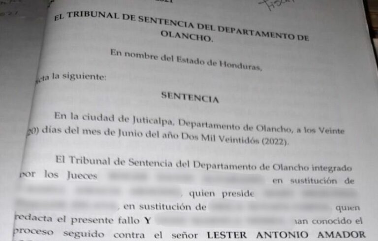 Tegucigalpa, Francisco Morazán. – La Fiscalía Regional de Olancho obtuvo recientemente dos sentencias condenatorias en casos de delitos contra la vida. En el primero de los casos, se reporta la sentencia condenatoria a 15 años de reclusión contra Lester Antonio Amador Escobar, por la comisión del delito de homicidio en perjuicio de Amílcar Antonio Rodríguez Rivas, en un hecho que se suscitó en la colonia Santa Eduviges, Juticalpa.