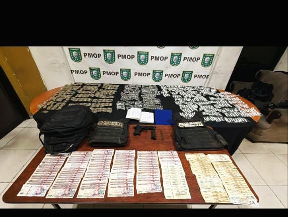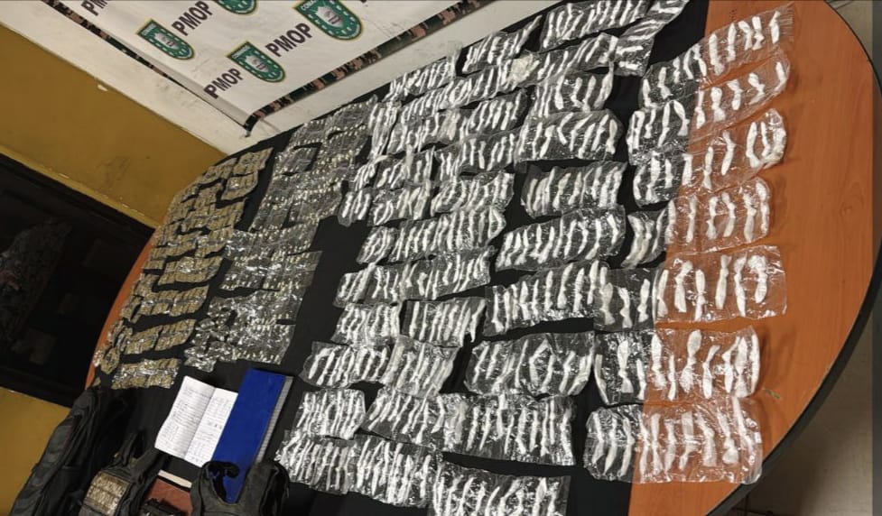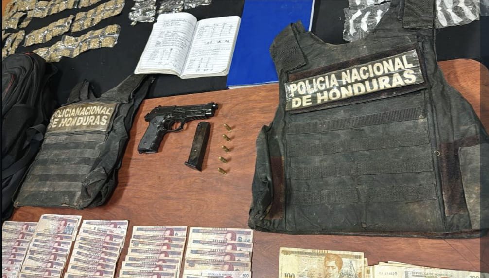 Además, dos chalecos antibalas con el nombre de la Policía Nacional y dos libros contables donde se llevaba el registro de las operaciones delictivas y a quienes se les entregaba y vendía la droga y dinero efectivo.
