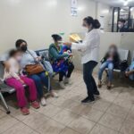 El MAIE de la sede principal de Tegucigalpa entrega material informativo en el IHSS del barrio abajo a mujeres para que conozcan las manifestaciones de violencia y los lugares dónde denunciarlas.