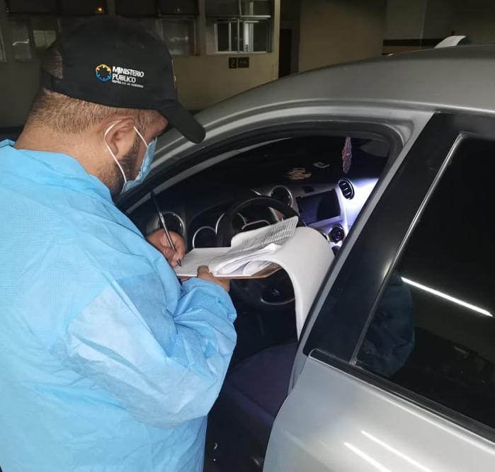 Una vez requeridos fueron trasladados a la sede del Ministerio Público en Comayagüela, donde Técnicos en Procesamiento de la Escena del Crimen efectuaron la inspección donde se encontró en la parte del baúl donde iba va la llanta de repuesto, también se hizo el decomiso de un arma de fuego, tipo pistola, marca Glock.