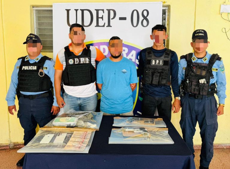 La captura del presunto traficante la ejecutaron elementos de la Unidad Departamental de Policía (UDEP-8) junto a la Dirección Policial de Investigaciones (DPI) decomisándole supuesta cocaína, marihuana, dos armas de fuego, dinero en efectivo y un teléfono celular.