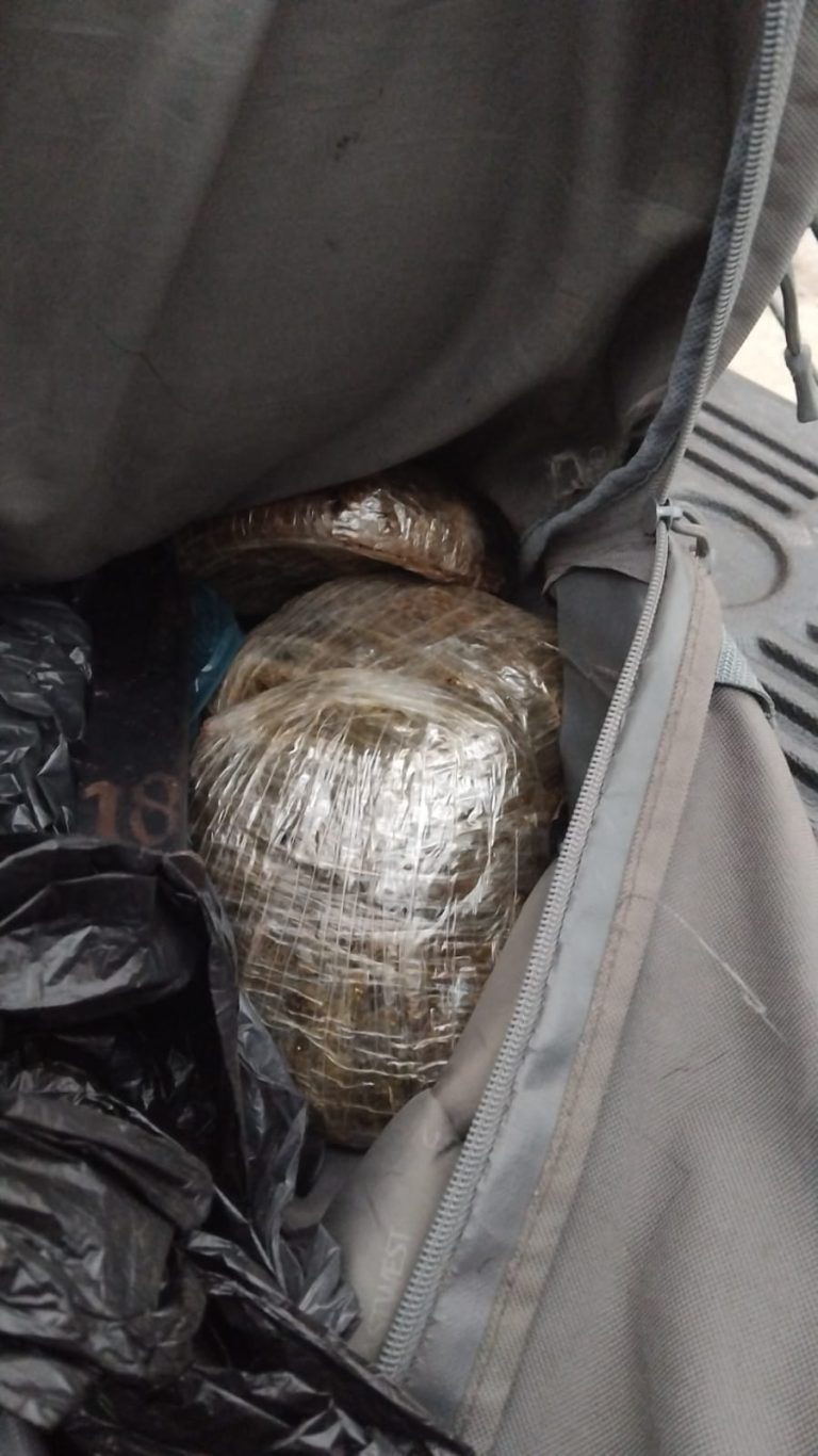 Sin embargo, fue requerido y al hacerle el registro personal se le despojó de una mochila donde se le encontró cinco envoltorios medianos de plástico transparente conteniendo en su interior hierba seca, supuesta marihuana , un total de 83 envoltorios conteniendo en su interior supuesta cocaína y una mini uzi color negra sin serie.