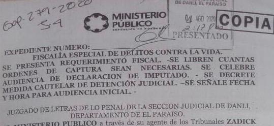 La audiencia inicial se desarrolló en el Juzgado de Letras de Sección Judicial de Danlí, donde los Fiscales de la Sección de Investigación de Muertes de Personas pertenecientes a Grupos Sociales Vulnerables de la FEDCV presentaron suficientes elementos probatorios para que se abriera el proceso a ambos imputados.