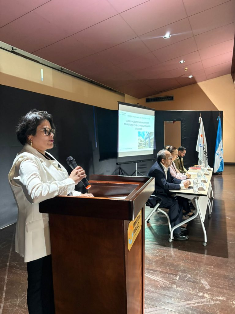 El desarrollo temático estuvo a cargo de expertos en la materia, iniciando con la intervención del abogado Neldin Funes, del Consejo de Personal. Durante su disertación, analizó la legislación vigente que rige el sistema disciplinario dentro del Ministerio Público, detallando las causas recurrentes que motivan los expedientes en esta unidad y la importancia de observar el marco legal en cada actuación institucional.