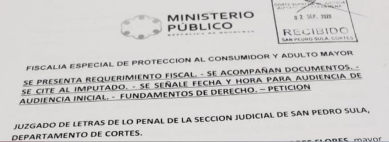 San Pedro Sula, Cortés. La Fiscalía Especial de Protección al Consumidor presentó en San Pedro Sula, requerimiento fiscal en contra del Director Administrativo de la empresa y agencia “La Mundial”, el señor Kenny José Yuja Diek señalado del supuesto delito de especulación en perjuicio del consumidor.