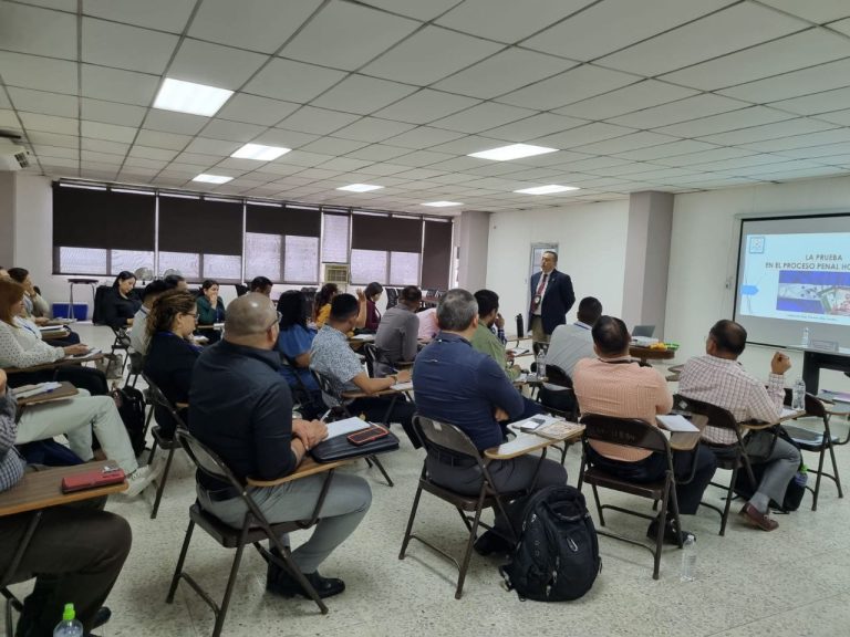 El curso impartido por el abogado Roberto Blen Andino, de la Escuela de Formación, es dirigido a personal fiscal, detectives de la Dirección de Lucha Contra el Narcotráfico (DLCN) y agentes de la Agencia Técnica de Investigación Criminal (ATIC), asignados a la Fiscalía Regional del Norte en San Pedro Sula.