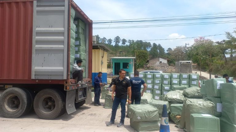 Danlí, El Paraíso. Agentes de tribunales de la fiscalía de turno, en Danlí, El Paraíso en conjunto con personal de la Aduana Las Manos, Dirección Policial de Investigaciones (DPI) y Policía de Frontera realizan una inspección a dos contenedores por la presunción del delito de uso ilegítimo de marcas registradas.
