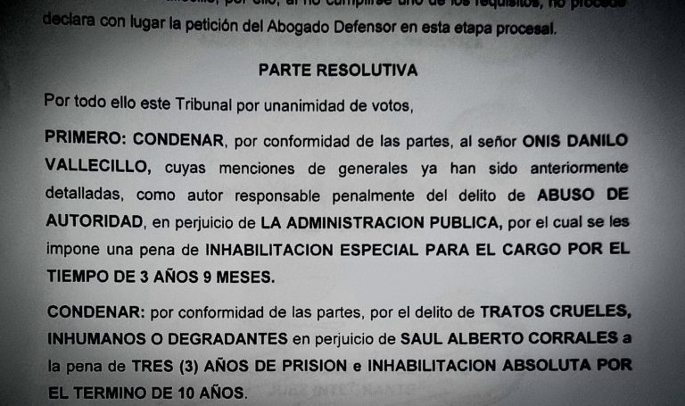 Tegucigalpa, Francisco Morazán. – Fiscales de Protección a los Derechos Humanos, en las últimas horas obtuvieron una sentencia condenatoria por estricta conformidad por los delitos de abuso de autoridad y tratos crueles, inhumanos o degradantes en perjuicio de la administración pública y una persona, la causa penal se impulsó en contra de Onis Danilo Vallecillo.