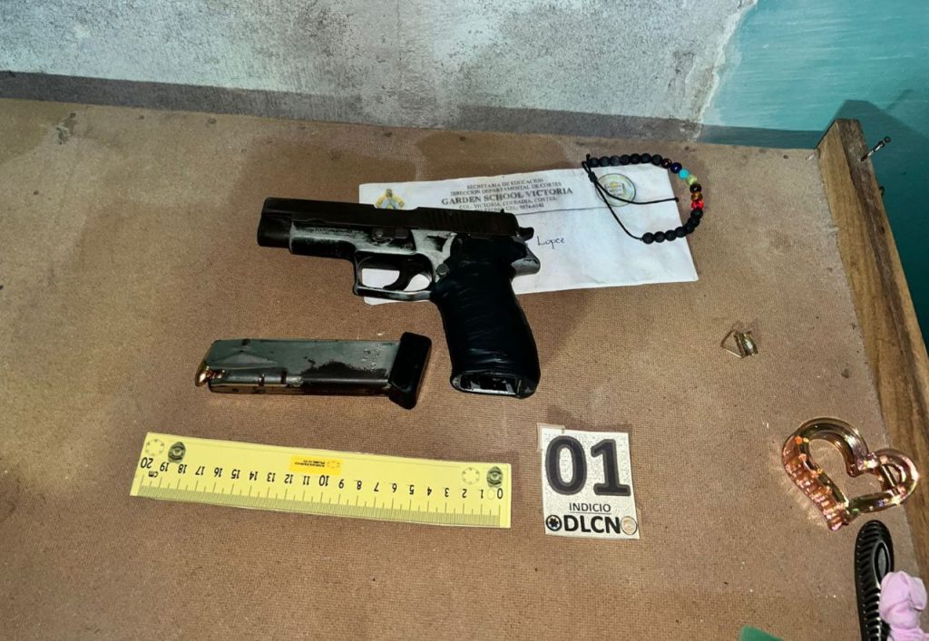 Mientras que, en otro operativo con elementos de la Policía Militar del Orden Público (PMOP), se logró la detención de Hesler Jesús López Díaz a quien se le decomisó un vehículo tipo camioneta, un teléfono celular, un chaleco antibalas con la leyenda de la Dirección Policial Anti Maras y Pandillas Contra el Crimen Organizado (DIPAMPCO), un arma de fuego, un aro de presión y droga.