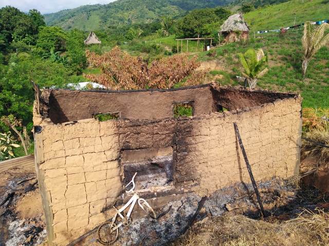 Ella informó que su casa es de bajareque y techo de manaca y cuando se hallaba junto a sus dos hijos menores, observó que se estaba incendiando, por lo que como pudo logró salir con los niños.