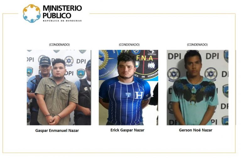 Habiéndose demostrado la responsabilidad de Gaspar Enmanuel Nazar Posadas, Erick Gaspar Nazar Nehymaya y Gerson Noé Nazar Cortés, el Tribunal de Sentencia de Comayagua dictó la condena, imponiendo la pena de 40 años de cárcel, a razón de 20 años por cada uno de los asesinatos, y ordenó remitirlos al Centro Penal de la localidad.
