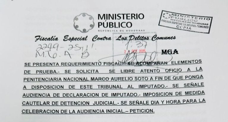 Según la investigación dirigida por la Fiscalía de Delitos Comunes, el imputado presentó inicialmente un instrumento público notarial ante el Juzgado de Letras de lo Civil de Francisco Morazán, pero su solicitud fue rechazada.