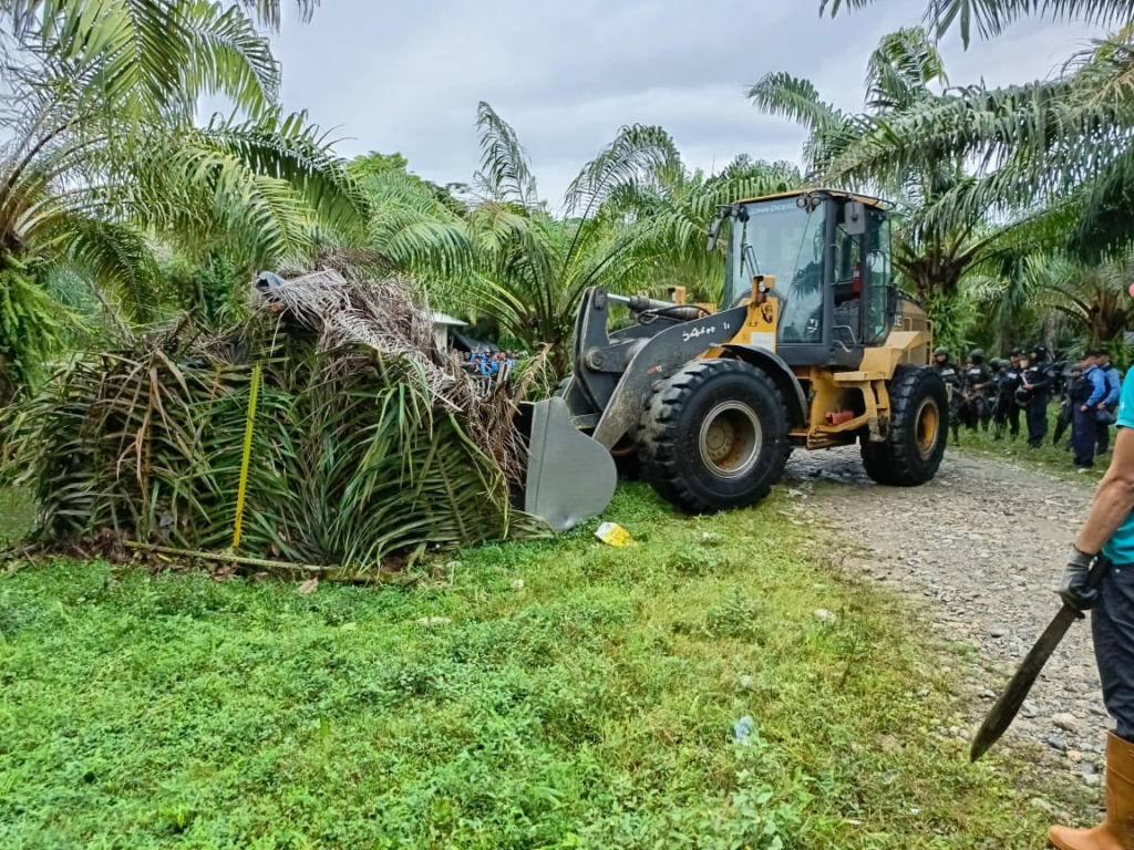 Al momento de llegar a las autoridades a las respectivas fincas de palma, solamente encontraron pequeñas construcciones que fueron destruidas con equipo pesado. Durante la ejecución de los desalojos pacíficos, no hubo personas detenidas.