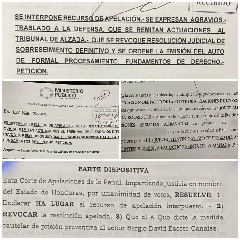 En la causa por violación continuada en perjuicio de una joven de 16 años, en audiencia de revisión de medidas, el juez revocó la medida de prisión preventiva impuesta al imputado Sergio David Escoto Canales, sustituyéndola por las medidas contenidas en el artículo 173 del Código Procesal Penal. La Fiscalía interpuso el correspondiente recurso de apelación, y la Corte de Apelaciones revocó la resolución judicial, ordenando nuevamente la prisión preventiva del sospechoso.