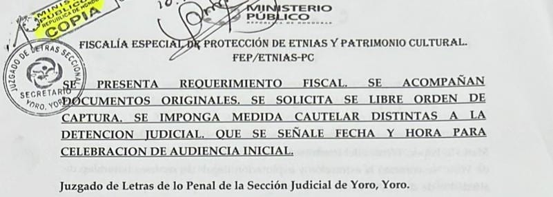 Tegucigalpa, Francisco Morazán. La Fiscalía Especial de Protección de Etnias y Patrimonio Cultural (FEP/ETNIAS-PC) presentó requerimiento fiscal contra Evangelista Orellana Rodríguez por suponerlo responsable del delito de explotación ilegal de recursos naturales, incendio y usurpación en perjuicio del medio ambiente y la Tribu Indígena Tolupán de Liquigue en Yoro.