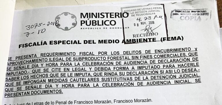 Tegucigalpa, Francisco Morazán. – La Fiscalía Especial de Medio Ambiente (FEMA), obtiene auto de formal procesamiento contra Porfirio González López, por probar su participación en la comisión del delito de aprovechamiento ilegal de sub producto forestal sin fines de lucro y encubrimiento contra la administración pública.