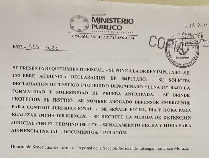 Tegucigalpa, Francisco Morazán. – Gracias a la buena conducción del caso por parte de los fiscales y a la pronta acción de las autoridades policiales del sector, la Fiscalía de Talanga presenta requerimiento fiscal contra Roger Uriel Gálvez García, por suponerle responsable del asesinato de Jeremy Janiel Zúniga Almendarez, hecho acaecido en Guaimaca, Francisco Morazán.