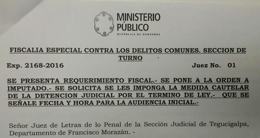 Tegucigalpa. Francisco Morazán. La Fiscalía de Turno presentó en las últimas horas Requerimiento Fiscal contra Cesar Alejandro Chavarria Ávila, por suponerlo responsable a título de autor directo del delito de Robo de Vehículo Agravado y Robo Agravado en perjuicio de varios residentes de la capital.