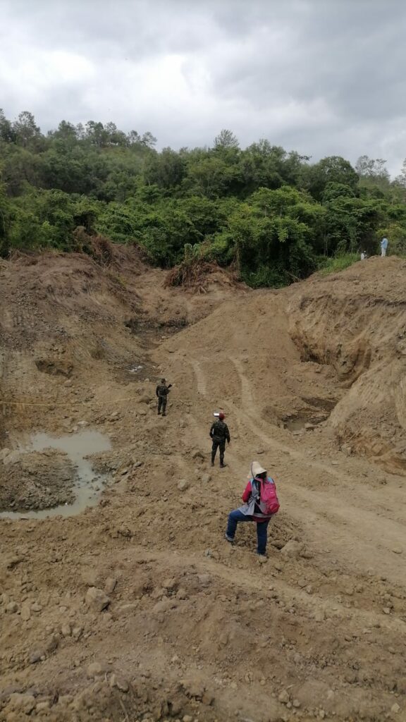 Por razones de seguridad, elementos del Tercer Batallón de Protección Ambiental de Pinalejo, Santa Bárbara, acompañaron a las autoridades en el recorrido por el sitio así como la inspección total del mismo.