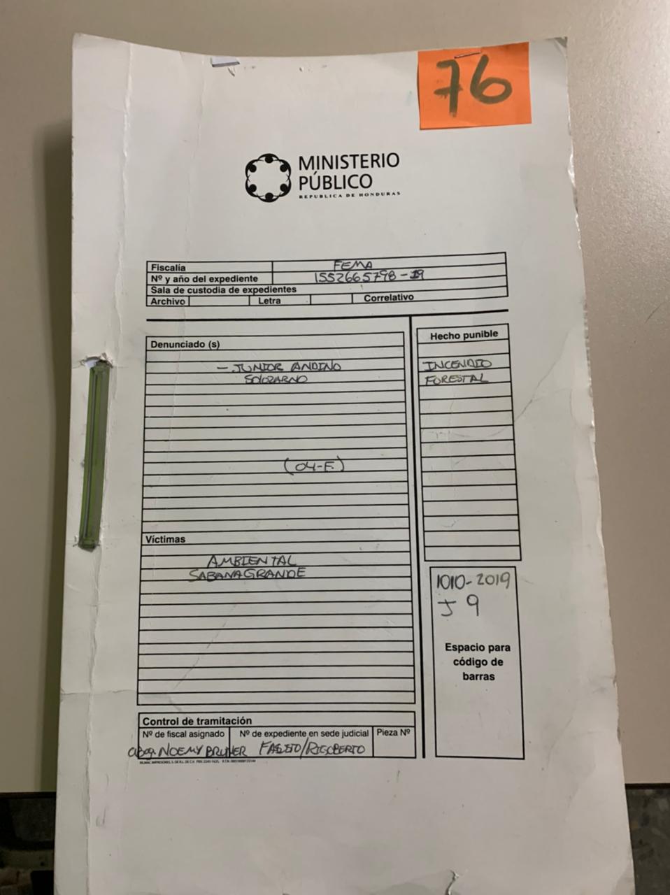 Según el expediente investigativo, el 9 de marzo de 2019, Andino Solorzano inició una ronda para la limpieza de su propiedad de dos manzanas de extensión, por la inexperiencia, el fuego se propagó a 70 hectáreas del cerro “La Fortuna”, Sabanagrande, Francisco Morazán.